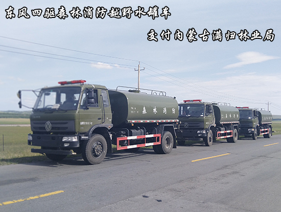 滿歸林業(yè)局采購的四驅(qū)水罐車詳細(xì)配置如下:東風(fēng)4×4越野SCS5183GPSEQ型四驅(qū)綠化噴灑車:采用東風(fēng)EQ2180GD5DJ型越野汽車底盤,東風(fēng)153寬體駕駛室,4×4驅(qū)動,康明斯ISB190 50國五發(fā)動機(jī),六檔變速箱,東風(fēng)商用車橋,前驅(qū)動橋3.8噸,后橋10噸,10.00R20輪胎,軸距4500mm,電動玻璃,方向助力,斷氣剎,ABS。罐體采用優(yōu)質(zhì)碳鋼Q235板材,板材厚度4mm,罐體容積11.1立方,安裝取力器,威龍大功率水泵可泵進(jìn)泵出,后置工作平臺帶水炮射程25米,消防栓接口左右各一個,駕駛室頂部安裝長條警燈帶喊話器,全車顏色軍綠,兩側(cè)噴涂白色森林消防字樣。