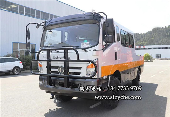 出口專供東風(fēng)全時四驅(qū)越野工程車全時四驅(qū)半承載式工程車,完美的將載人載貨的功能結(jié)合一起來。它,三段式設(shè)計:駕駛室,乘客區(qū)(10人容量),貨倉(載重2.5T)。