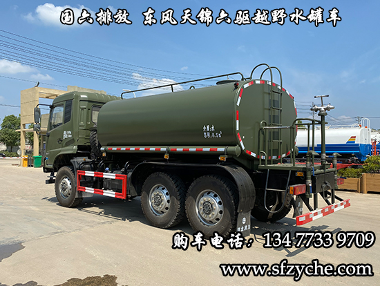 國六排放潤知星牌SCS5165GPSDFV6型六驅(qū)越野綠化噴灑車_東風(fēng)天錦六驅(qū)森林消防水罐車_六驅(qū)園林綠化灑水車主要用于城鄉(xiāng)園林綠化灑水,噴藥等;主要裝置為水罐及泵.隨底盤選裝駕駛室.罐體有效容積8.7立方米.罐體外形尺寸(長×長軸×短軸)(mm) 4200×2350×1300.側(cè)、后防護(hù)材料為Q235B,側(cè)、后防護(hù)與車架焊接連接.后部防護(hù)裝置斷面尺寸(寬×高)50×120(mm),后部防護(hù)離地高度:460mm.ABS型號/生產(chǎn)廠家:3631010-C2000/東科克諾爾商用車制動系統(tǒng)(十堰)有限公司。東風(fēng)天錦六驅(qū)越野綠化灑水車上裝配置:罐體采用優(yōu)質(zhì)碳鋼QB235板材,板材厚度4mm,罐體容積8.7立方,安裝取力器,60-90威龍大功率水泵可泵進(jìn)泵出,后置工作平臺帶水炮射程25米,消防栓接口左右各一個,選裝駕駛室頂部安裝長條警燈帶喊話器,全車顏色軍綠,兩側(cè)噴涂白色森林消防字樣等。