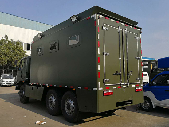車輛概述:六驅(qū)自行炊事車功能簡介:該裝備主要編配于部隊,為部隊官兵野外作業(yè)時提供良好的飲食保障:具有制作食品、保溫食品和儲存食品的空間與功能、并具有提供開水和餐具消毒的功能。采用東風國五越野底盤改裝, 車廂材質(zhì)采用外冷軋鋼板,內(nèi)飾不銹鋼,中間保溫層,隱藏式上車踏步,頂部安全窗,兩個副食灶,一個蒸飯車,抽油煙機,平冷柜,水路,電路,油路等。