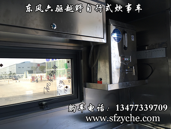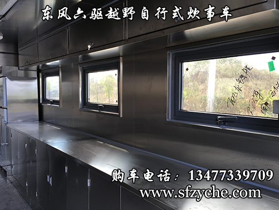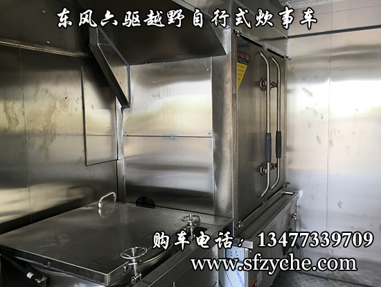 東風(fēng)六驅(qū)越野自行式炊事車車輛概述:采用東風(fēng)六驅(qū)越野底盤改裝, 車廂材質(zhì)采用外冷軋鋼板,內(nèi)飾不銹鋼,中間保溫層,隱藏式上車踏步,頂部安全窗,兩個(gè)高原副食灶,一個(gè)高原蒸飯車,抽油煙機(jī),平冷柜,水路,電路,油路等。
