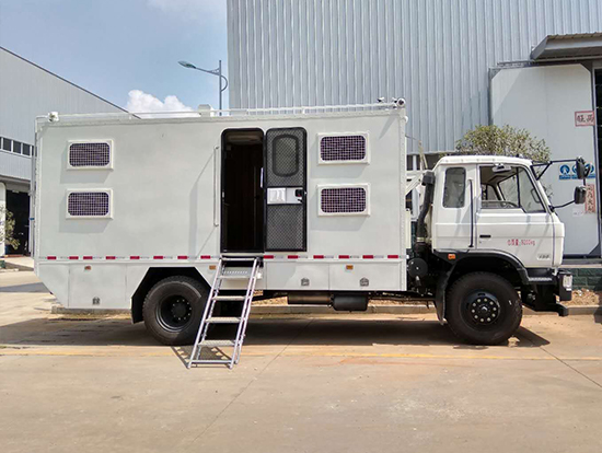 三、東風(fēng)四驅(qū)越野宿營車, 4驅(qū)越野宿營車用途:適用公安、特警、公安、邊防、衛(wèi)生、交通、礦山、地質(zhì)、軍隊(duì)等部門]長期野外作業(yè)、勘察、救援、搶險(xiǎn)、救災(zāi)等宿營用,箱體空間利用大化。內(nèi)部配置:配備前儲物柜、后儲物柜、液晶電視機(jī)應(yīng)急燈、頂燈、頂置空調(diào)、床墊、被褥等。選裝配備8組豪華折疊臥鋪、未鋪上下梯、安全保險(xiǎn)帶、電源插口等,細(xì)節(jié)精致。外置燃油加熱器、頂護(hù)欄、前爬梯、隱藏抽拉梯、專用房車門、專用玻璃滑窗、警示燈等。