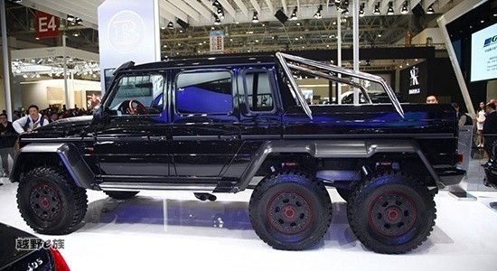 關(guān)于巴博斯:BRABUS,中文譯為搏速或者巴博斯,是一家成立與1977年的汽車改裝公司,現(xiàn)已躋身為全球最大的汽車改裝廠商之一。BRABUS的改裝是不惜工本的,包括夸張的外觀、奢華的內(nèi)飾和和暴力的性能。盡管它并不是奔馳的直屬公司,但BRABUS卻是奔馳的合作專業(yè)改裝廠。所有戴姆勒-克萊斯勒的產(chǎn)品都可以經(jīng)由BRABUS進行頂級的改裝,而BRABUS麾下的奔馳改裝車型絕對可以稱得上是“百奔之奔”! 巴博斯700G 6X6驅(qū)動越野改裝車這款價值高達800萬的巴博斯改版奔馳G63 AMG 6X6。以下為此車的圖片,敬請欣賞!